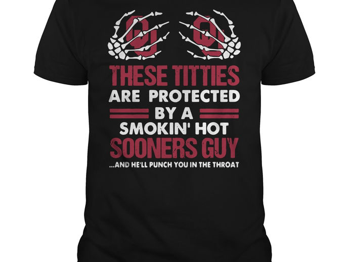 Order a copy now. There isn’t a lot and These titties are protected by a smokin’ hot Sooners Guy and he’ll punch you in the throat shirt....