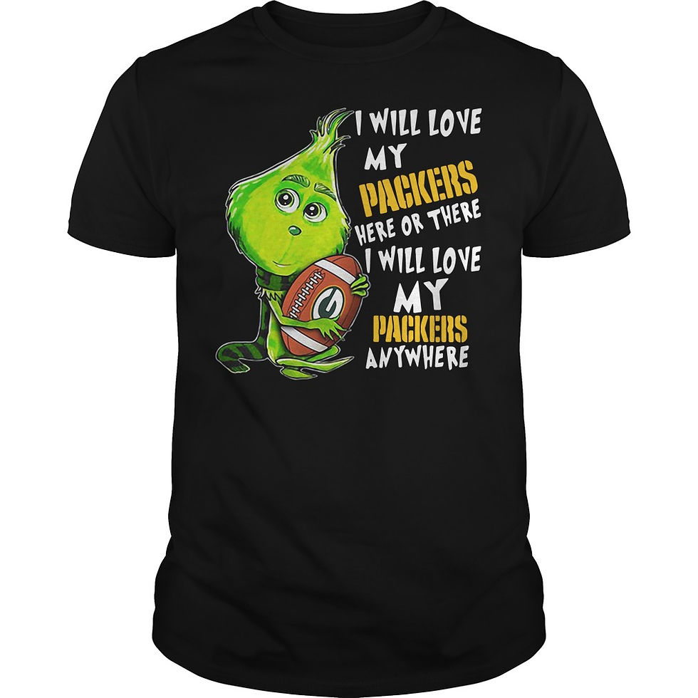 Grinch I will love my Green Bay Packers here or there or anywhere shirt